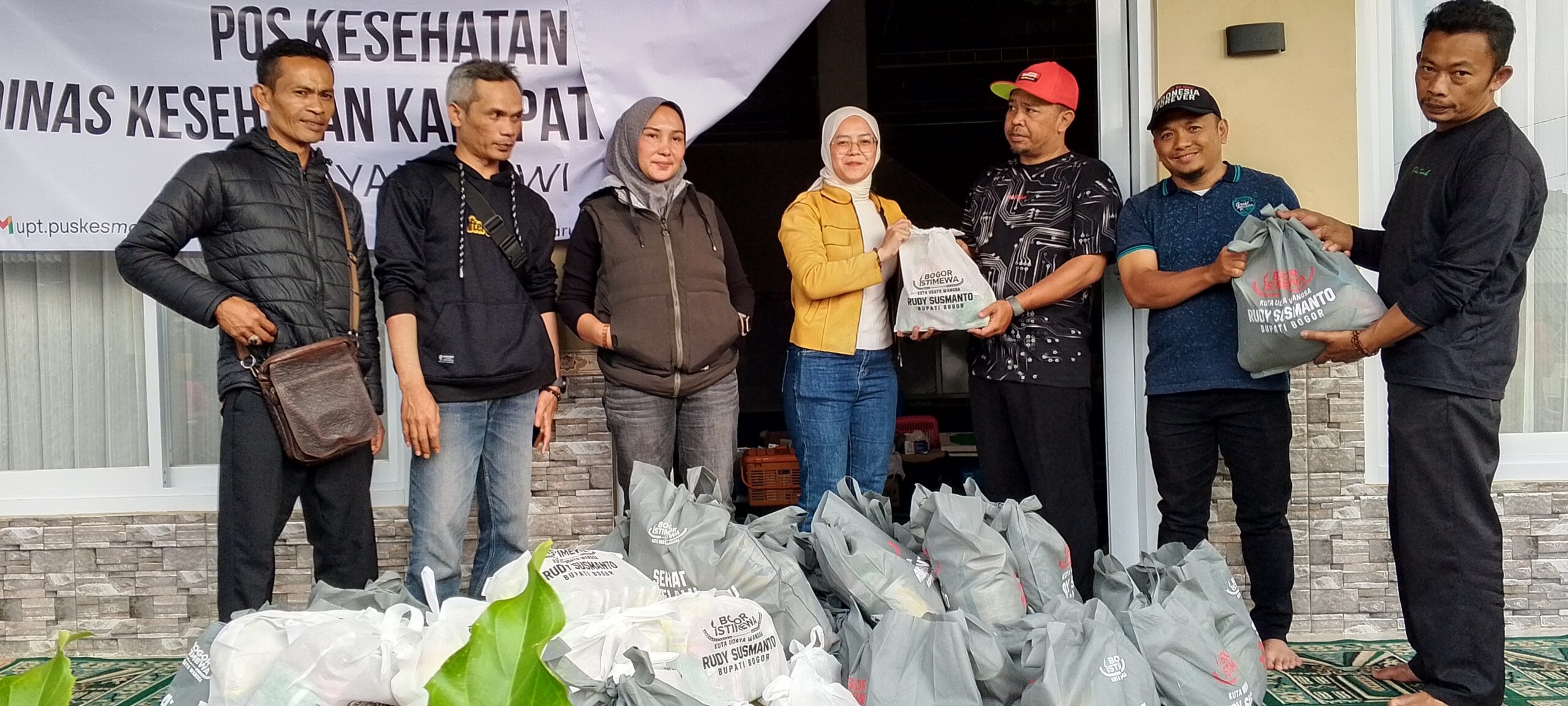 strong>DigitalStory.id — Tim Relawan Go Rudy Beramal, pendukung Bupati Bogor terpilih Rudy Susmanto, menyerahkan ratusan paket bantuan untuk korban banjir bandang, warga Kampung Pensiunan, Desa Tugu Selatan, Kecamatan Cisarua, Kabupaten Bogor.