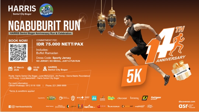 Bogor, Digitalstory.id – Dalam rangka merayakan ulang tahun ke-14, HARRIS Sentul City Bogor menghadirkan event spesial bertajuk Ngabuburit Run 5K – Special Anniversary Edition yang akan diselenggarakan pada 07 Maret 2026 pukul 15.00 WIB (Waktu Registrasi) di area HARRIS Sentul City Bogor. Mengusung semangat Stay Fit, acara ini menjadi momen istimewa untuk mengisi waktu menjelang berbuka puasa dengan kegiatan yang sehat, menyenangkan, dan penuh kebersamaan.